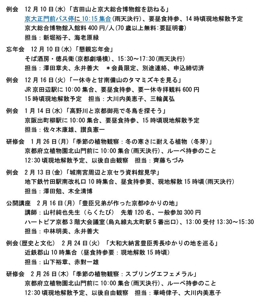 雨天決行等の特記のない屋外行事は、前日21時前の