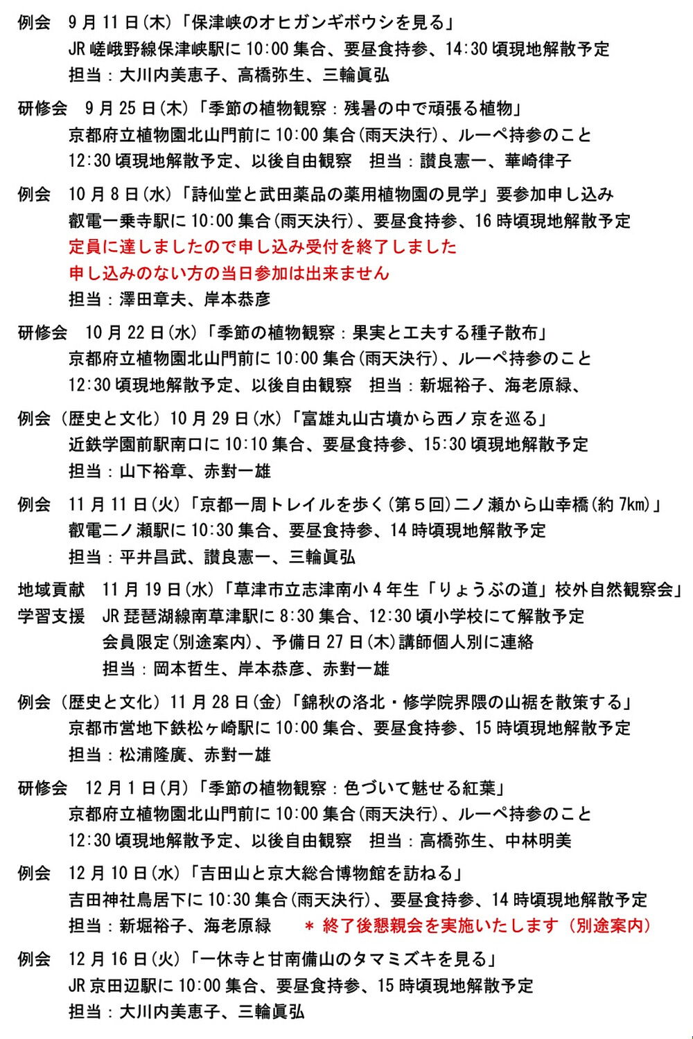 雨天決行等の特記のない屋外行事は、前日